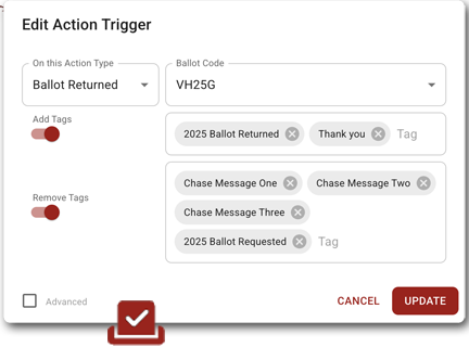 Build your infrastructure for your voter outreach by using tags, party affiliation, voter history with triggers